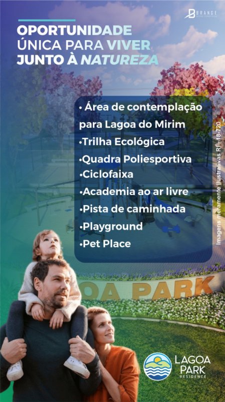 O bem-estar, tranquilidade e conforto que você precisa está aqui no Lagoa Park Residence, um loteamento com área total de 171.477,385m, 180 lotes, no bairro Mirim. Com unidades residenciais e comerciais, o empreendiento que foi projetadopensando na qualidade de vida junto a natureza.